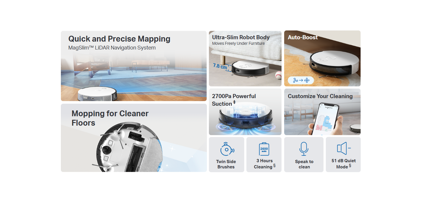 يرسم خريطة دقيقة لمنزلك خلال دقائق، يقلل من الإغفال والتكرار أثناء التنظيف، ويعمل بكفاءة حتى في الظلام.
