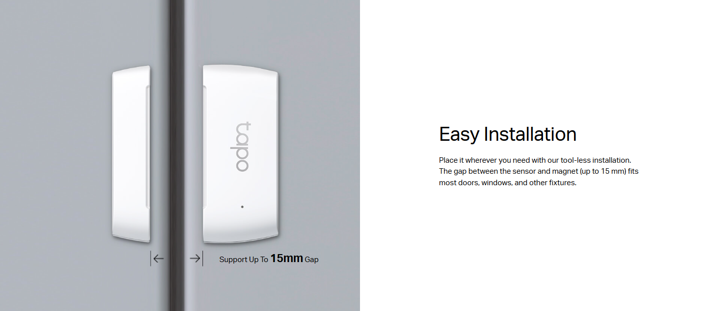 【مراقبة فورية للأبواب والنوافذ】: يتيح لك معرفة حالة أبواب ونوافذ منزلك (مفتوحة أو مغلقة) في الوقت الفعلي من أي مكان عبر تطبيق Tapo.