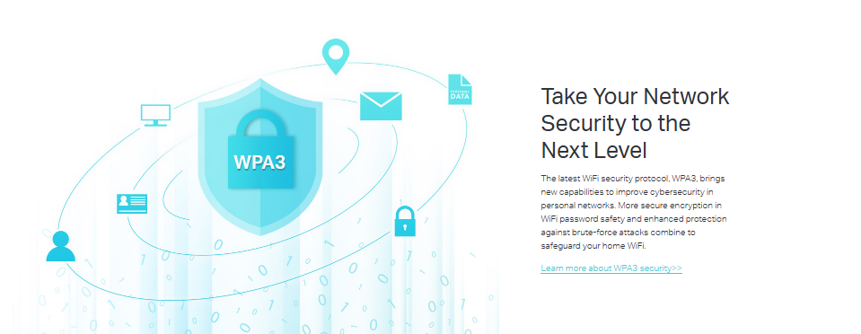 أمان WPA3 المتطور: يدعم أحدث بروتوكولات الأمان العالمي، مما يوفر حماية سيبرانية معززة لشبكتك الشخصية وبياناتك.