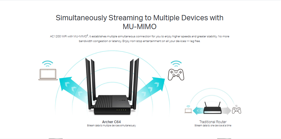 تقنية MU-MIMO: تعزز كفاءة توزيع البيانات للأجهزة المتصلة، مما يسمح بنقل البيانات لعدة أجهزة في وقت واحد دون تقليل السرعة.