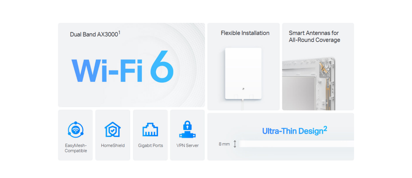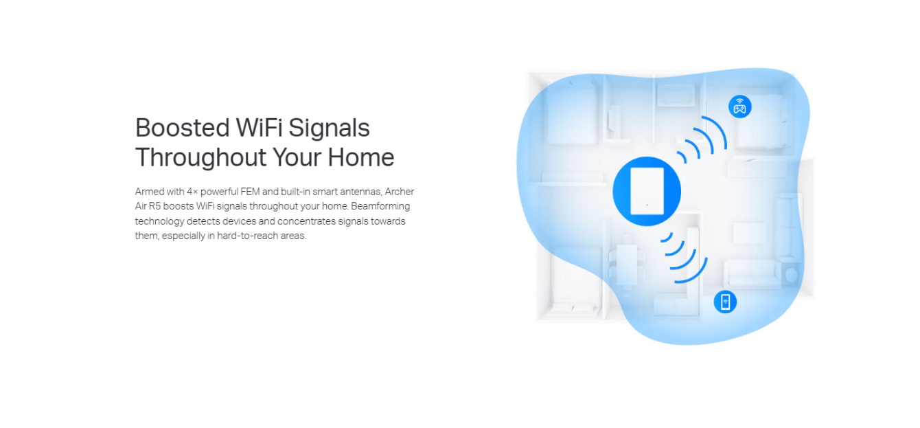 تقنية الهوائيات الذكية (Smart Antennas): يعتمد على خوارزميات ذكية لتحديد مواقع أجهزتك المتصلة تلقائياً، ويقوم بتوجيه الهوائيات لتركيز الإشارة نحوها، مما يمنحك تغطية مستقرة وقوية في جميع الاتجاهات.