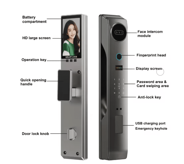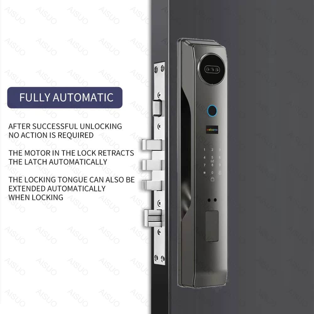 🔐 طرق فتح القفل: عبر بصمة الإصبع، البطاقة، كلمة المرور، التعرف على الوجه، أو تطبيق الهاتف.