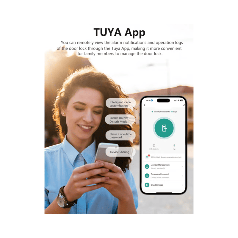 يدعم نظام Tuya WiFi: للتحكم بالقفل ومراقبته عن بُعد عبر هاتفك الذكي.