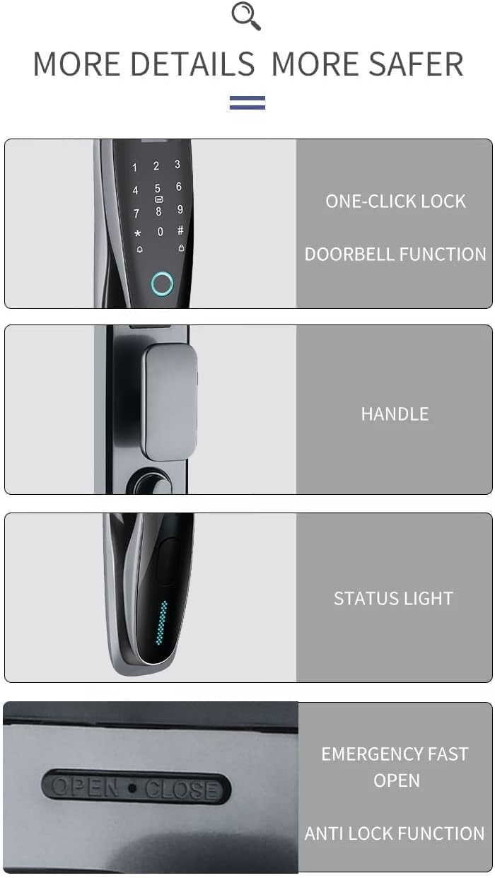📱 واي فاي تويا (Tuya WiFi): تحكم كامل في القفل من هاتفك عبر تطبيق Tuya، لفتح الباب ومراقبة الأمان من أي مكان.