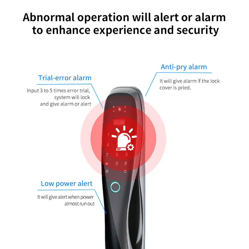 🔑 4 طرق ذكية للفتح: يوفر لك مرونة تامة في الدخول عبر (بصمة الإصبع، البطاقة الذكية، الرقم السري، أو تطبيق الجوال).