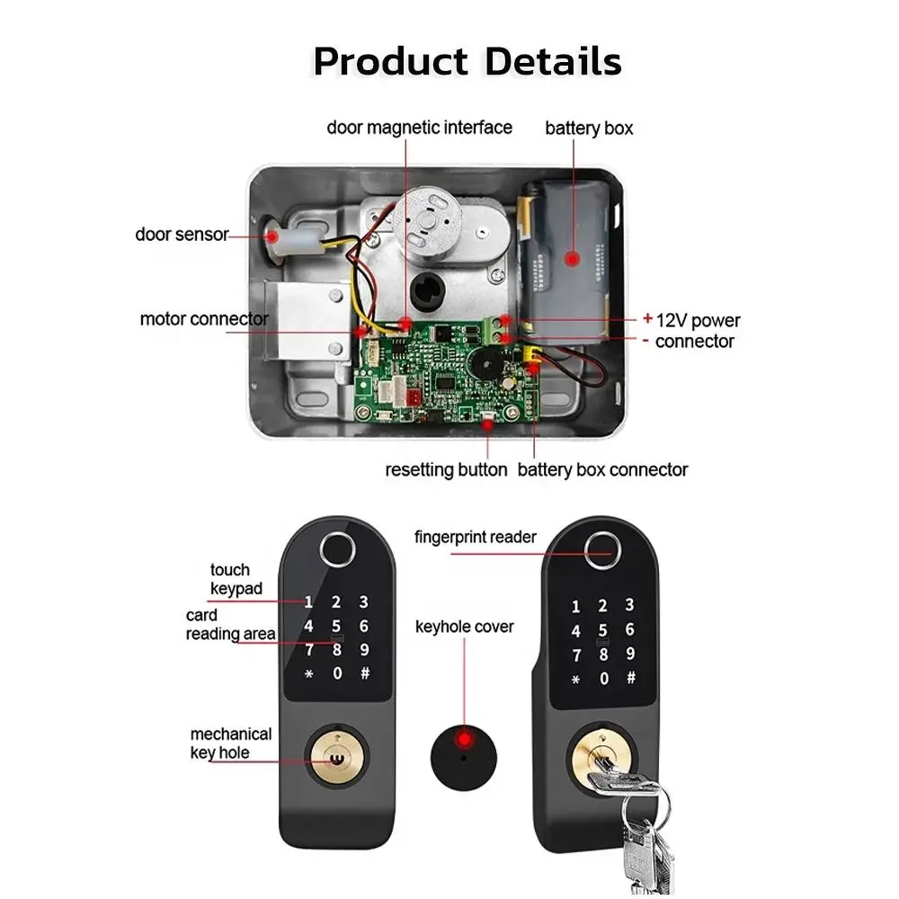 🔓 5 طرق للفتح: بصمة الإصبع، البطاقة الذكية، رمز المرور، تطبيق Tuya، والمفتاح الميكانيكي