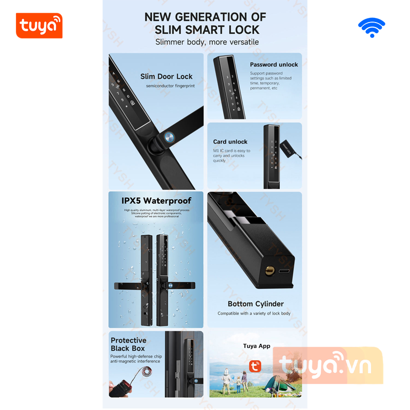 🌐 اتصال واي فاي مدمج: يربط مباشرة بتطبيق Tuya للتحكم عن بُعد ومتابعة سجلات الدخول لحظة بلحظة