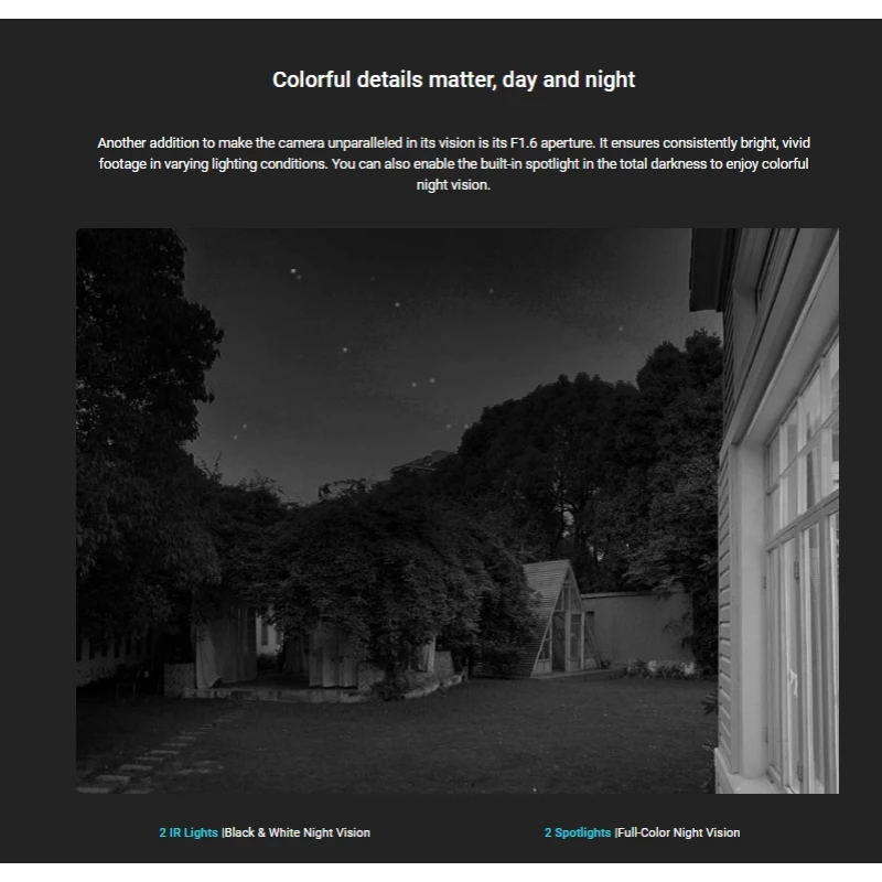 🌈 رؤية ليلية ملونة ذكية: تصوير ملون وواضح جداً حتى في الظلام الدامس بفضل الكشافات المدمجة