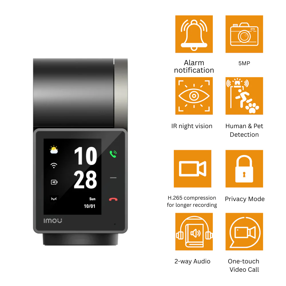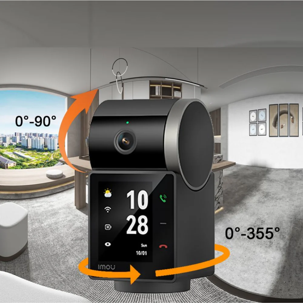 شاشة مدمجة لاتصال الفيديو: تتيح الكاميرا ميزة فريدة وهي “الاتصال بلمسة واحدة”؛ حيث يمكن للأطفال أو كبار السن في المنزل الاتصال بهاتفك مباشرة عبر الكاميرا ورؤيتك عبر الشاشة المدمجة.
