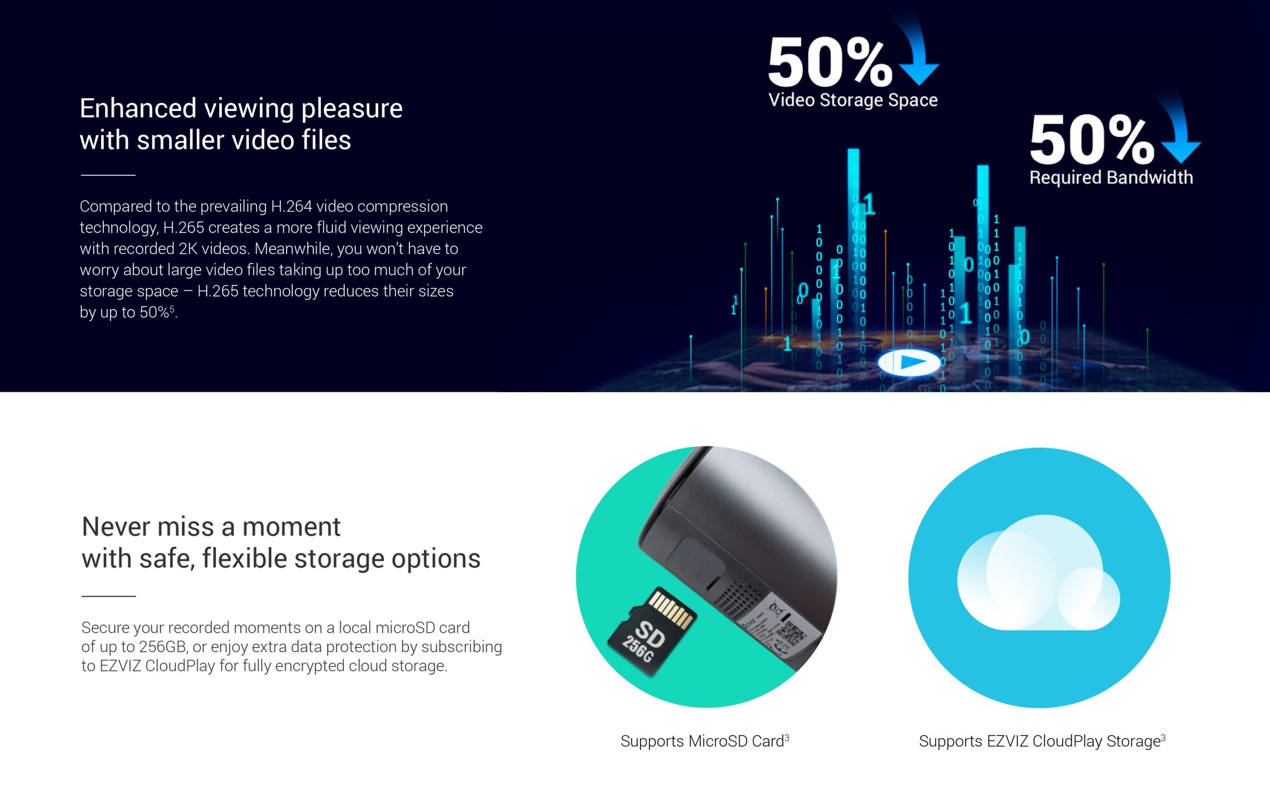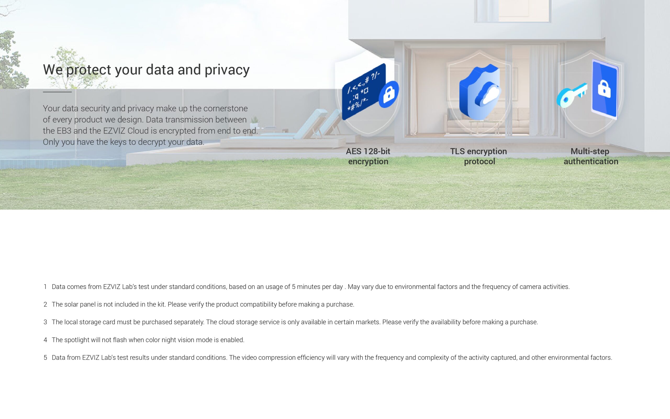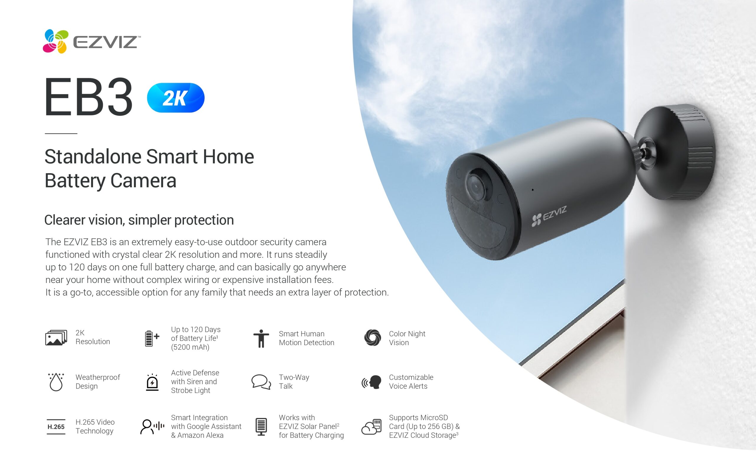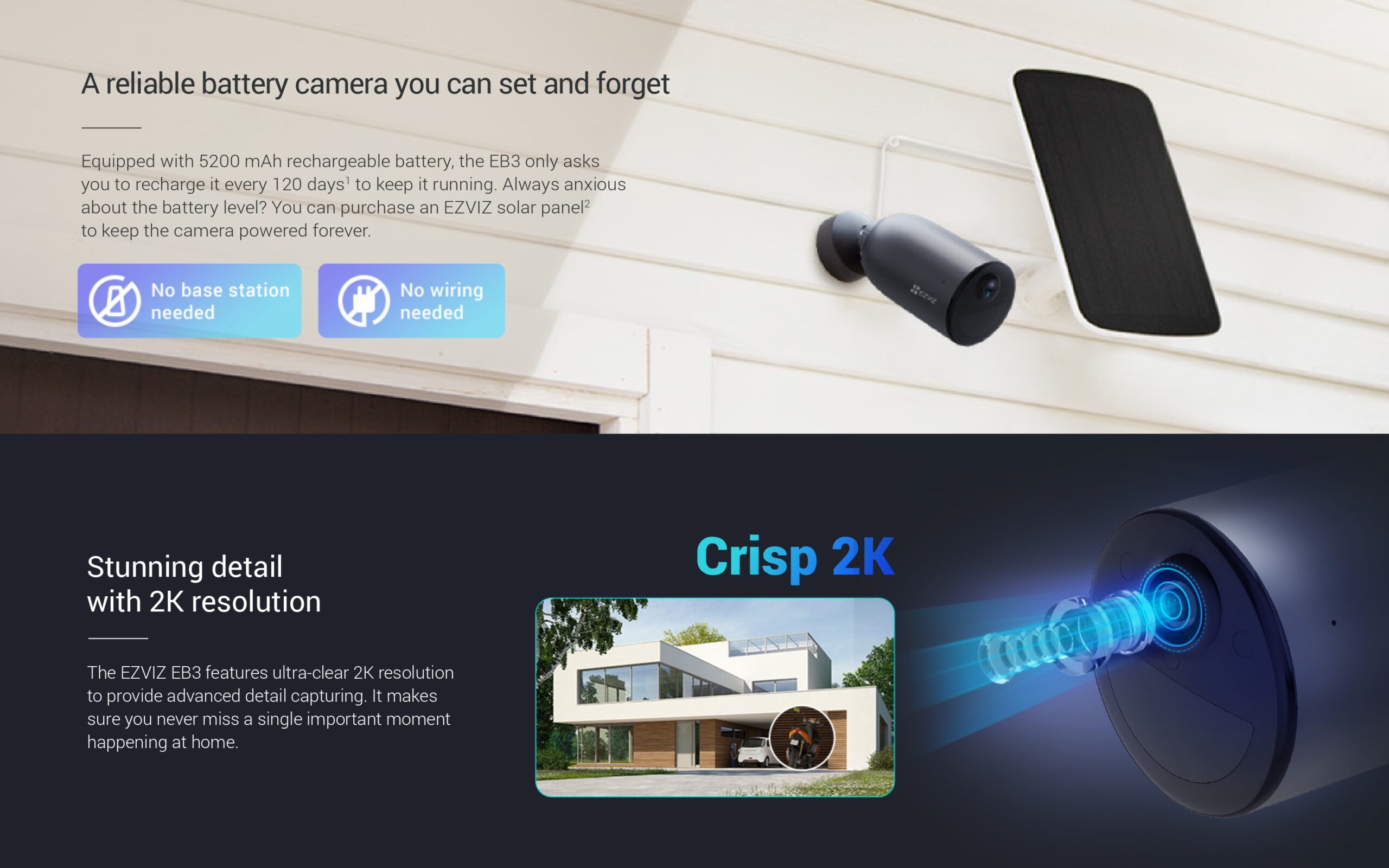 【طاقة شمسية لا تنفد】: خيار مثالي للتشغيل اللانهائي عبر ربطها بلوح الطاقة الشمسي من EZVIZ (يُباع بشكل منفصل).
