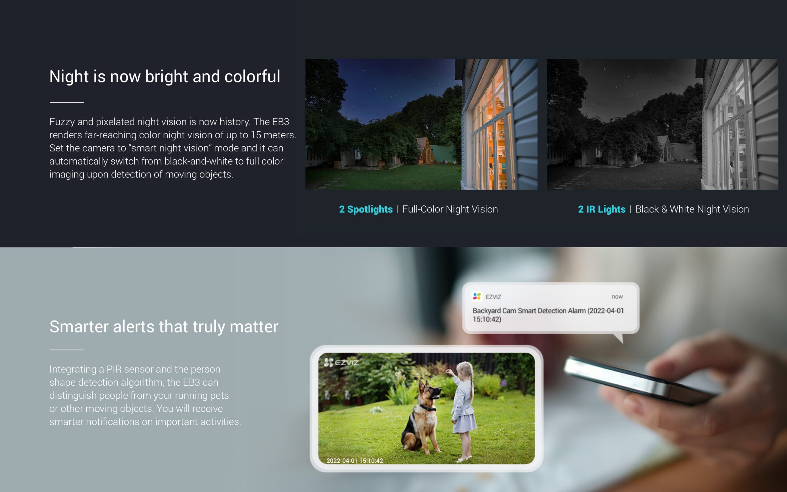 【رؤية ليلية ملونة متطورة】: رؤية واضحة جداً لمسافة تصل إلى 15 متراً، سواء بالنمط الملون أو بالأشعة تحت الحمراء.