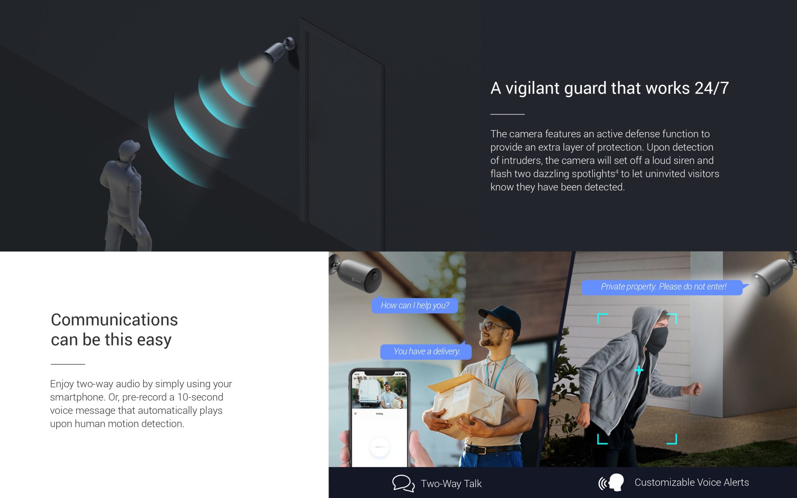 【تواصل ذكي وصوتي】: تحدث مباشرة عبر هاتفك أو قم بضبط رسالة صوتية تلقائية مدتها 10 ثوانٍ للرد على الزوار.