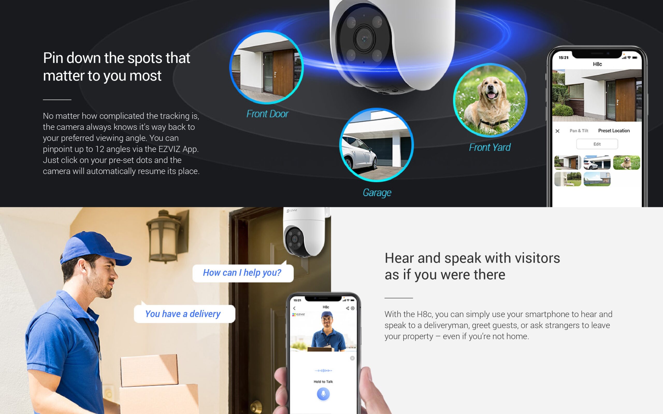 صوت ثنائي الاتجاه: تواصل مباشر مع الزوار أو المتسللين عبر هاتفك الذكي.