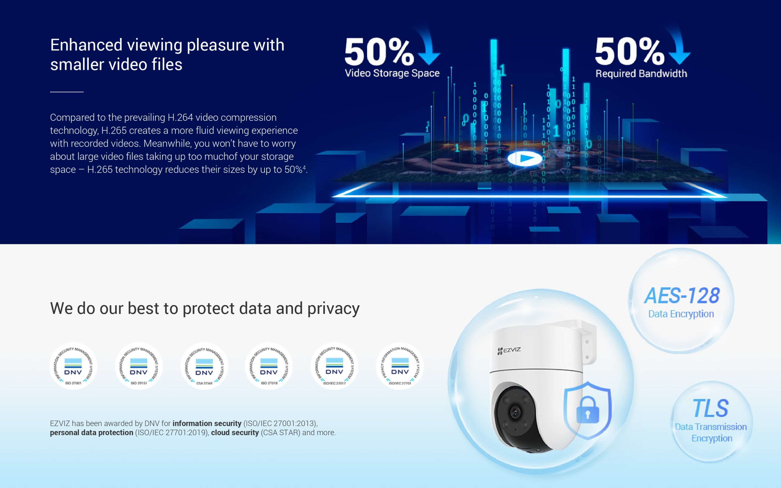 ضغط فيديو فعال (H.265): توفير 50% من مساحة التخزين واستهلاك البيانات مع الحفاظ على جودة الفيديو.