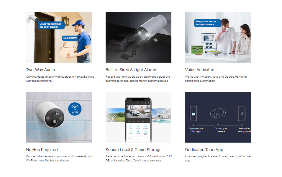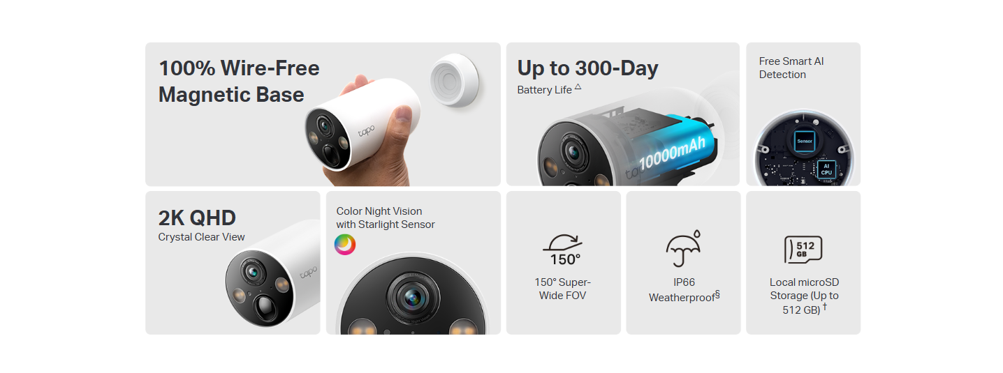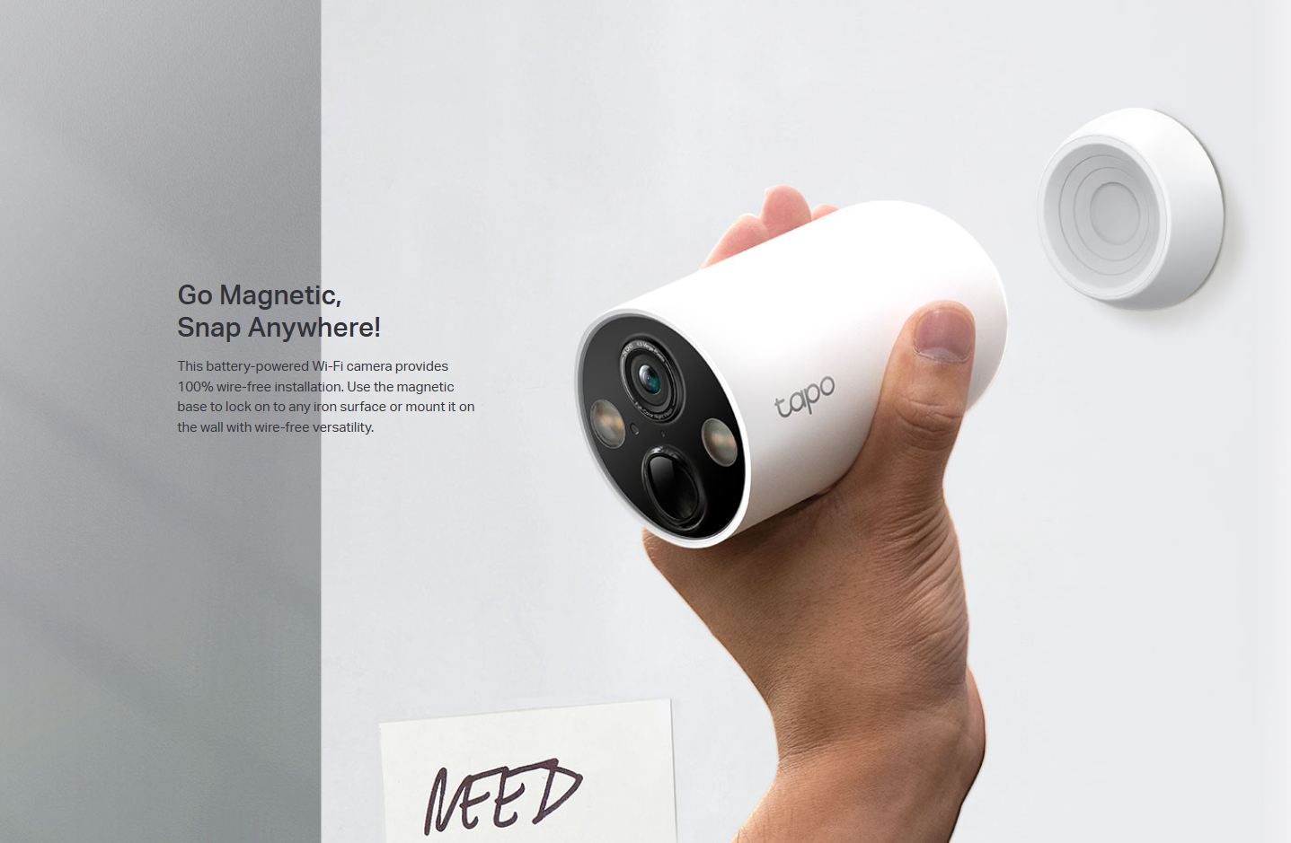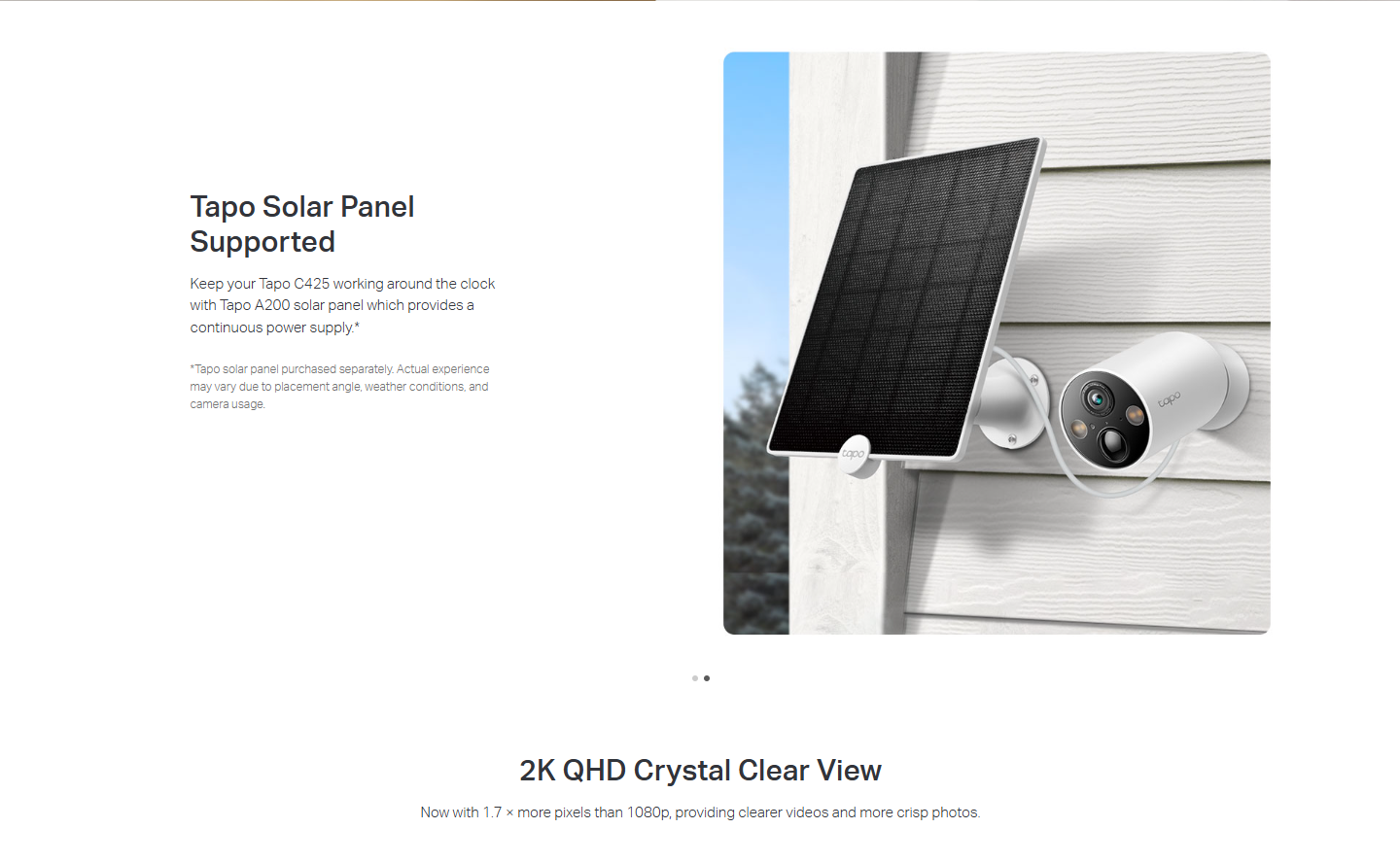 【دعم الطاقة الشمسية】: يمكن ربطها بلوح الطاقة الشمسي Tapo A200 لتعمل على مدار الساعة دون الحاجة لشحنها يدوياً أبداً.
