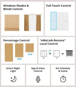 【التحكم الذكي بمحركات الستائر】: قم بتطوير ستائرك الكهربائية التقليدية؛ حيث يمنحك خيارات جديدة للتحكم والأتمتة في الستائر الكهربائية، الستائر الدوارة (Roller Blinds)، المظلات، وغيرها، بكل سهولة وعن بُعد عبر التطبيق.