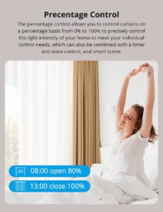 التحكم الصوتي: يدعم الجهاز أشهر المساعدات الذكية مثل Alexa، Google Home، و Alice، مما يتيح لك التحكم في ستائرك عبر الأوامر الصوتية بكل أريحية.