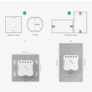 تحكم كامل باللمس: بالمقارنة مع مفاتيح اللمس العادية، يتميز T5-3C بمساحة لمس أكبر بكثير، مما يجعل التحكم في ستائرك بلمسة إصبع واحدة أمراً في غاية السهولة.