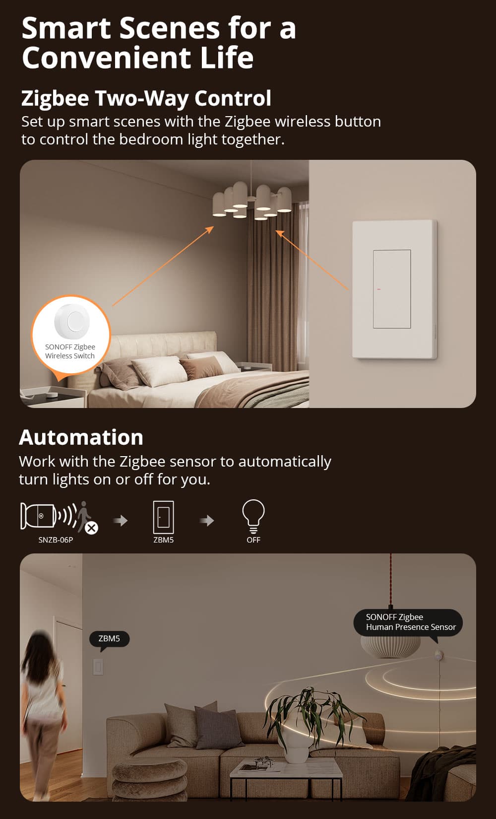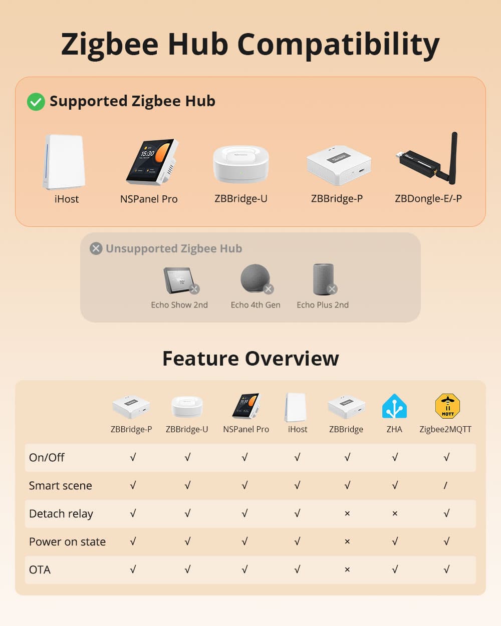 【متوافق مع موزعات زيجبي المتعددة】: يتكامل ZBM5 مع مختلف موزعات (Hubs) سونوف مثل NSPanel Pro، iHost، ZB Bridge-P، ZB Bridge-U، وZBDongle-E/P.
