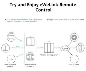 【التحكم عبر “eWeLink-Remote”】: يعتبر M5 مفتاحاً ذكياً يدعم وظيفة البوابة لخاصية “eWeLink-Remote”. لاستخدام هذه الخاصية، يجب ربطه مع جهاز S-MATE أو ريموت السيناريوهات R5 للتحكم اللاسلكي.