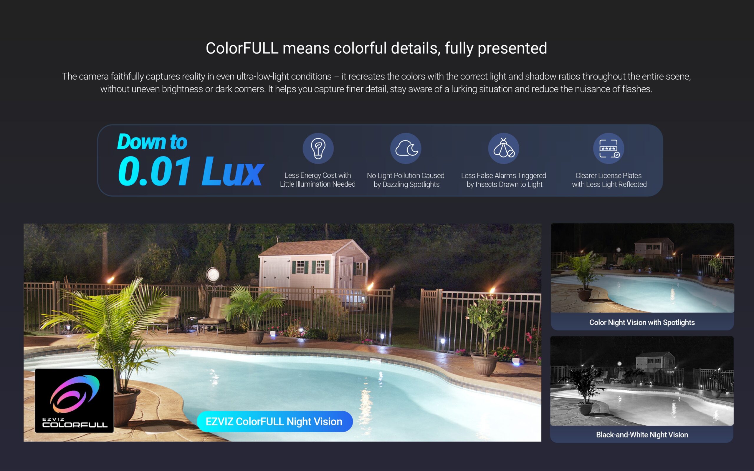 فتحة عدسة فائقة F1.0: تسمح فتحة العدسة الكبيرة بدخول المزيد من الضوء، مما يعزز جودة الصورة في الإضاءة المنخفضة ويضمن مراقبة ليلية واضحة تماماً.
