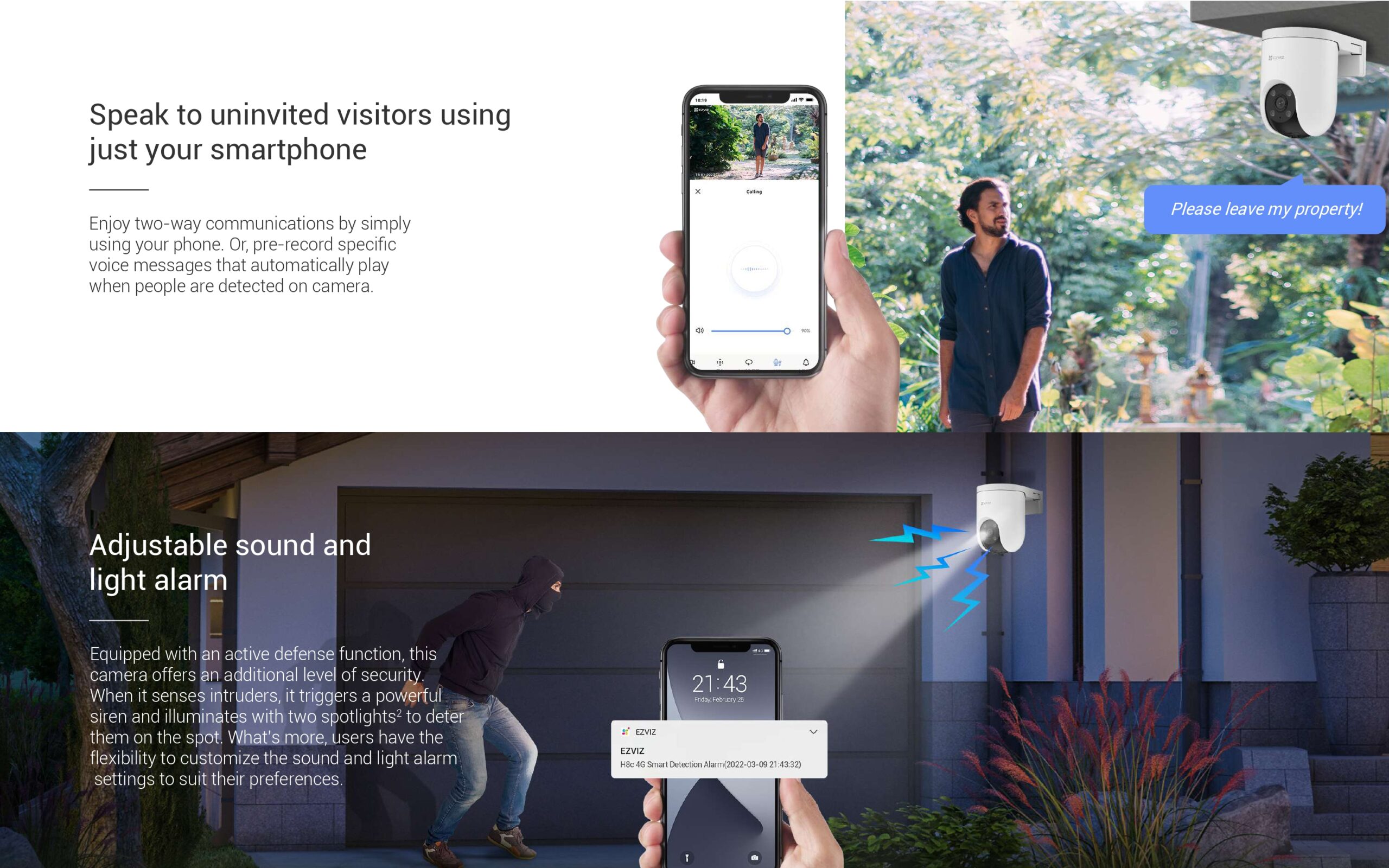 دفاع نشط: صافرة إنذار ووميض ضوئي لردع المتسللين.
