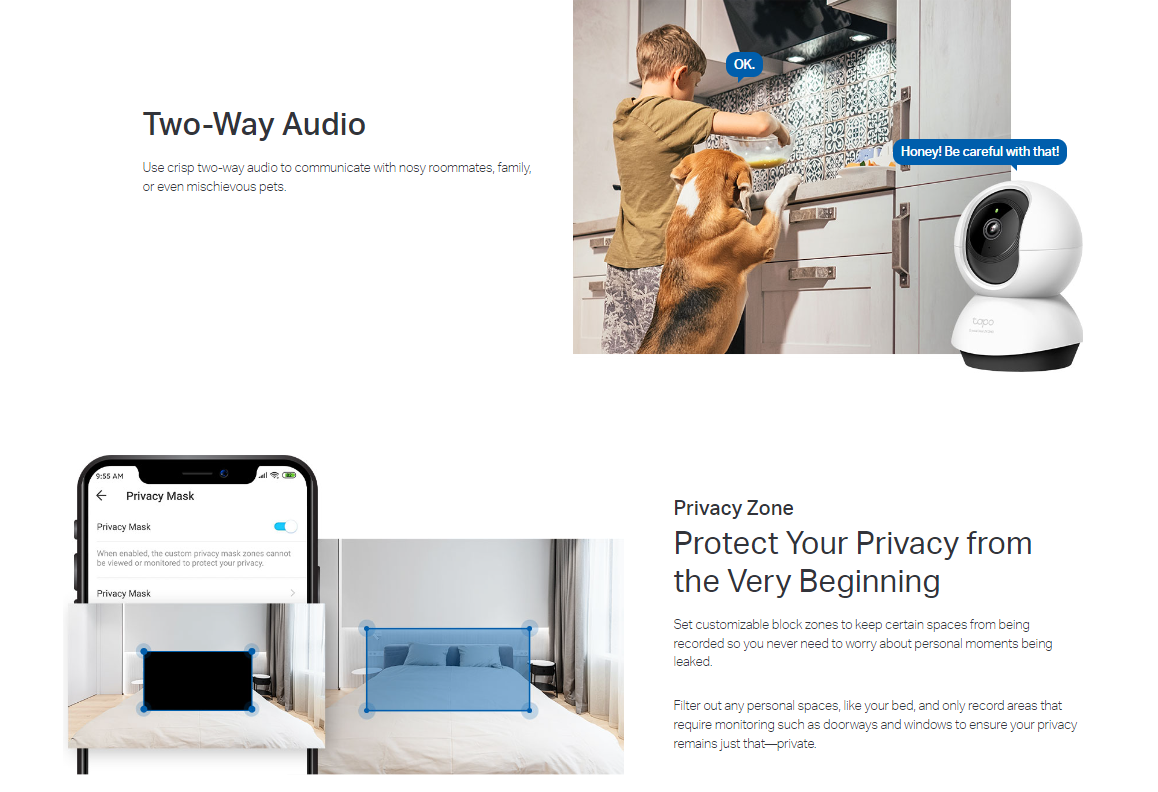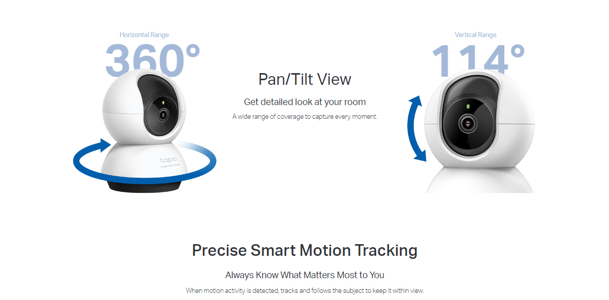 نطاق حركة واسع: استمتع بنطاق كامل يبلغ 360 درجة أفقياً و114 درجة رأسياً للتحريك والإمالة، مما يتيح لك تغطية مساحة أكبر.