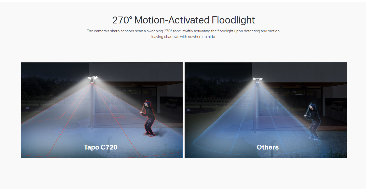كشاف يعمل بالحركة: بدقة تشبه دقة الصقر في الظلام، تكتشف الكاميرا الحركات العابرة وتفعل الكشاف لتغطية مساحة شاسعة تصل إلى 270 درجة.