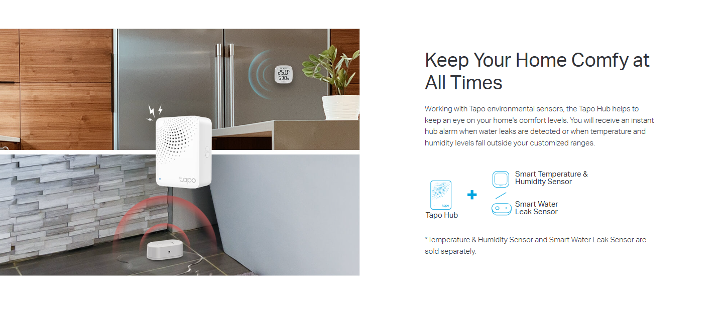 إنذار ذكي: يعمل بالتنسيق مع مستشعرات Tapo الذكية للتحذير من المخاطر أو ردع المتسللين.