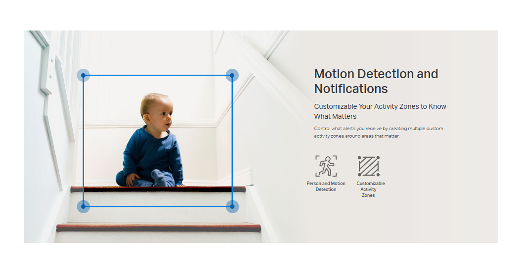 كشف الحركة والتنبيهات: ترسل لك إشعارات فورية عند اكتشاف الكاميرا لأي حركة.