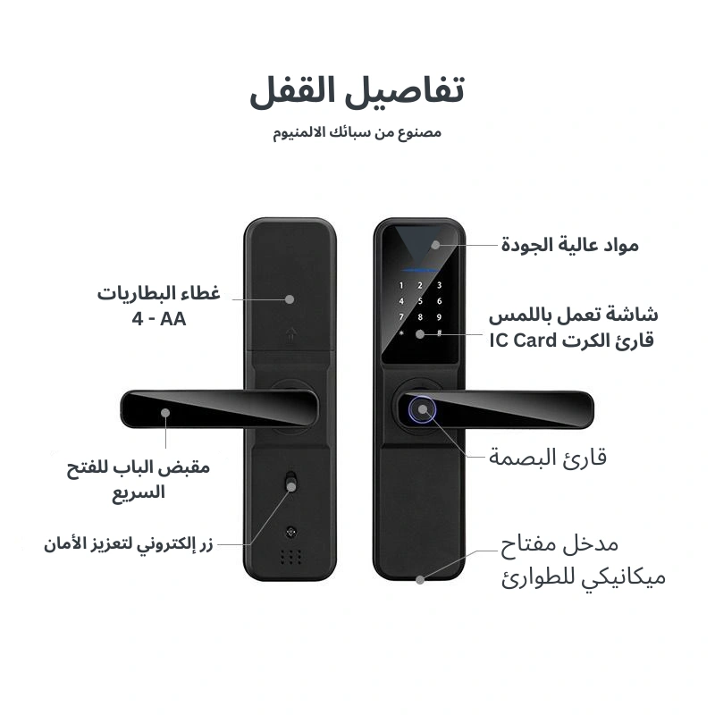 🔓 طرق فتح متعددة: يدعم الفتح عبر بصمة الإصبع، الرقم السري، البطاقة الذكية، أو من خلال التطبيق