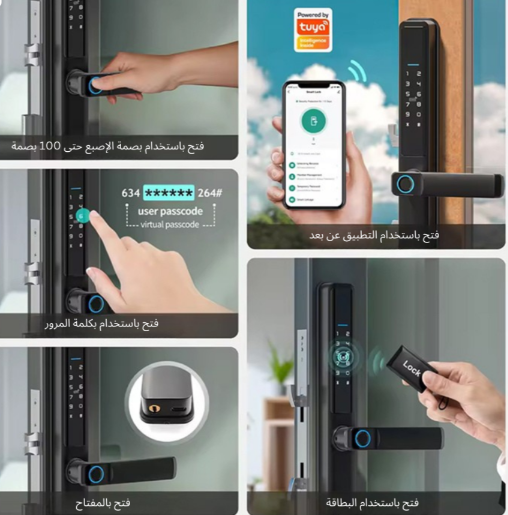 🔓 5 طرق ذكية للفتح: إمكانية الدخول عبر بصمة الإصبع، الرمز السري، البطاقة الذكية، التطبيق، أو المفتاح الميكانيكي