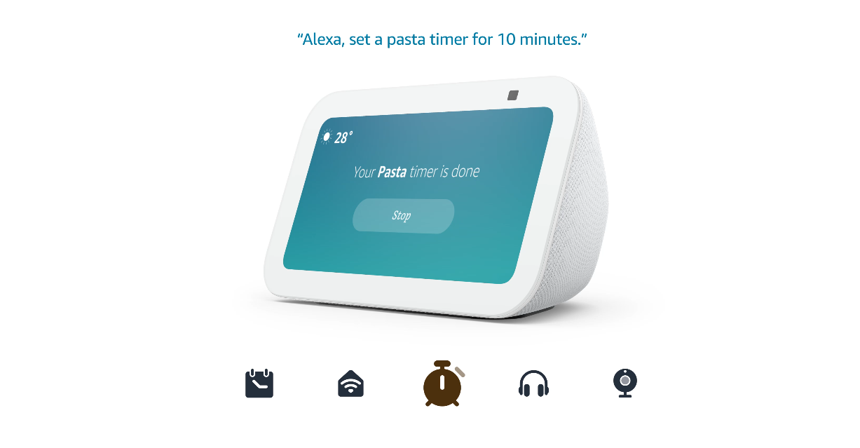 – A 5″ smart display with a speaker and alarm clock, powered by Alexa.