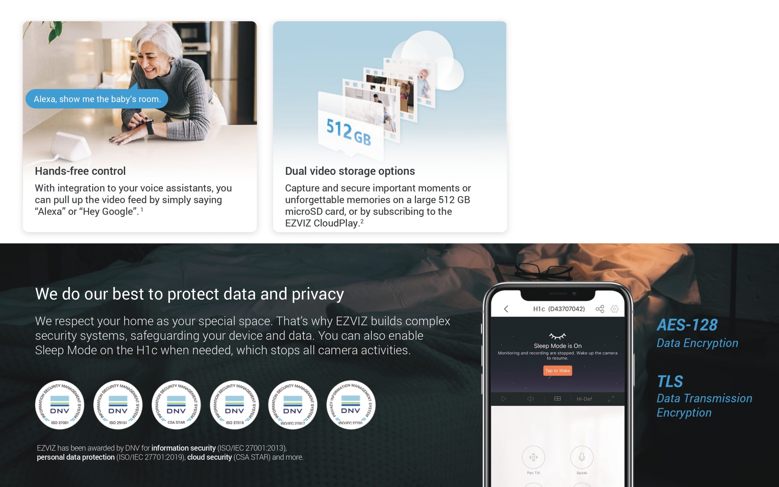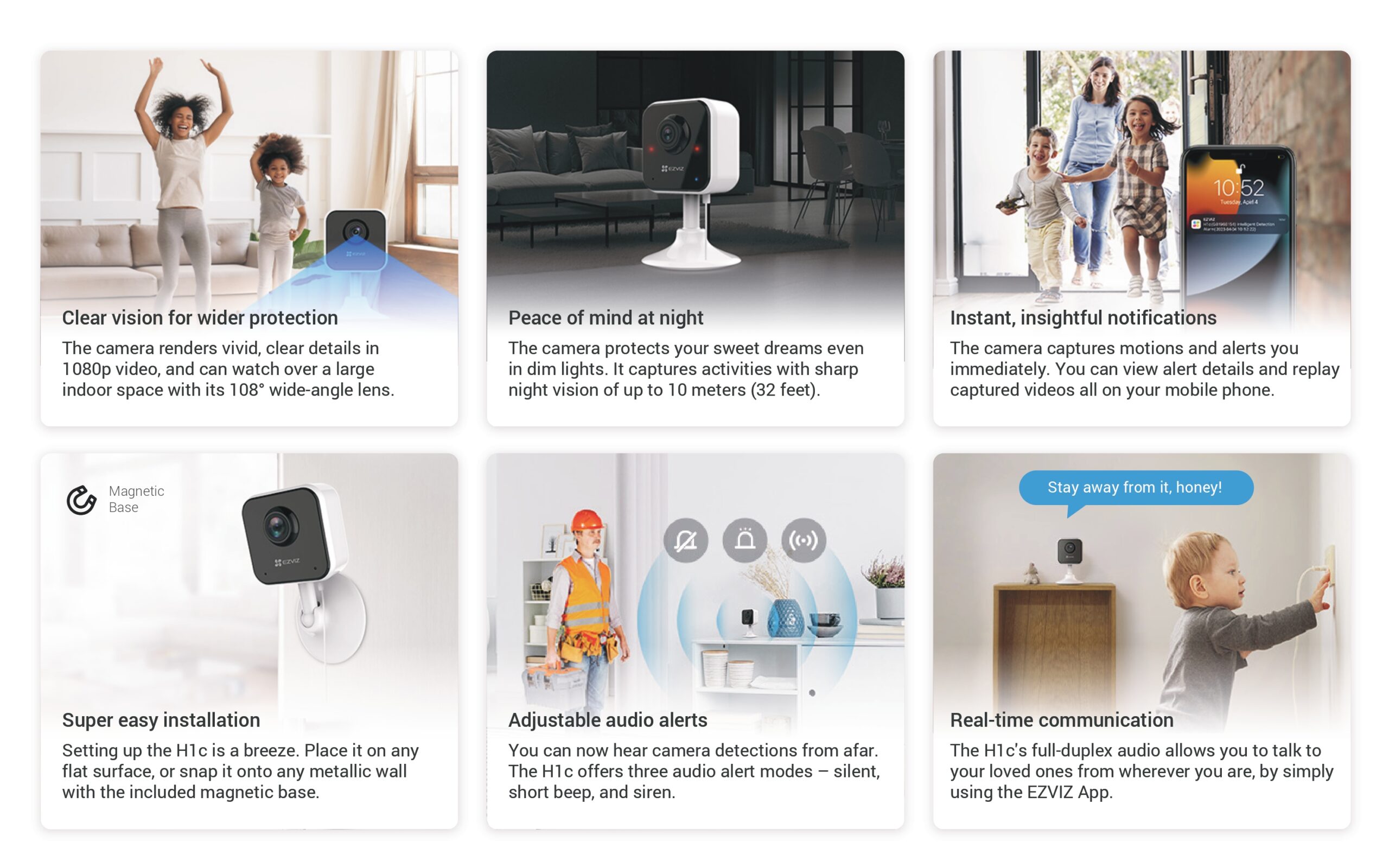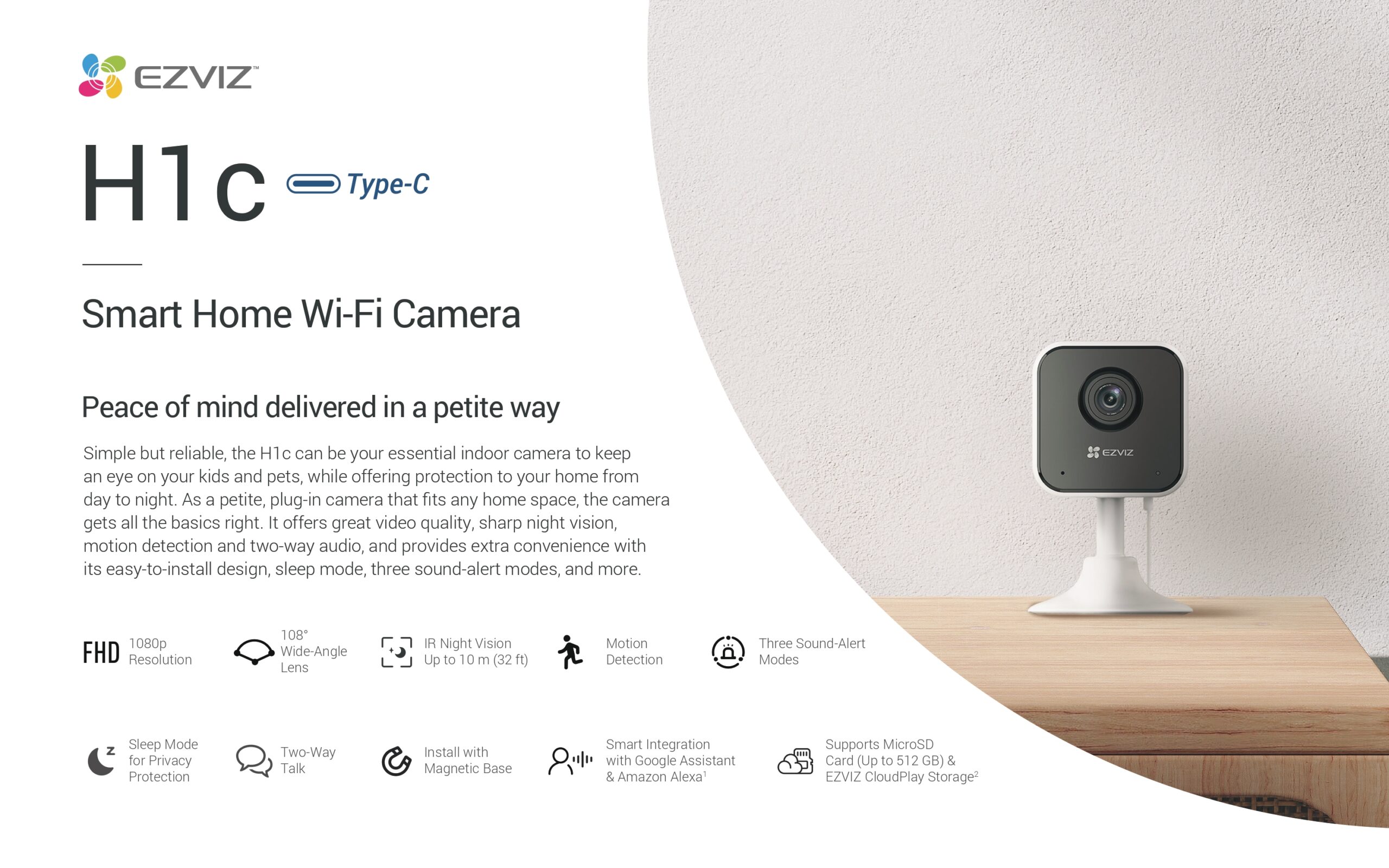 Simple but reliable, the H1c can be your essential indoor camera to keep an eye on your kids and pets, while offering protection to your home from day to night. As a petite, plug-in camera that fits any home space, the camera gets all the basics right. It offers great video quality, sharp night vision, motion detection and two-way audio, and provides extra convenience with its easy-to-install design, sleep mode, three sound-alert modes, and more.