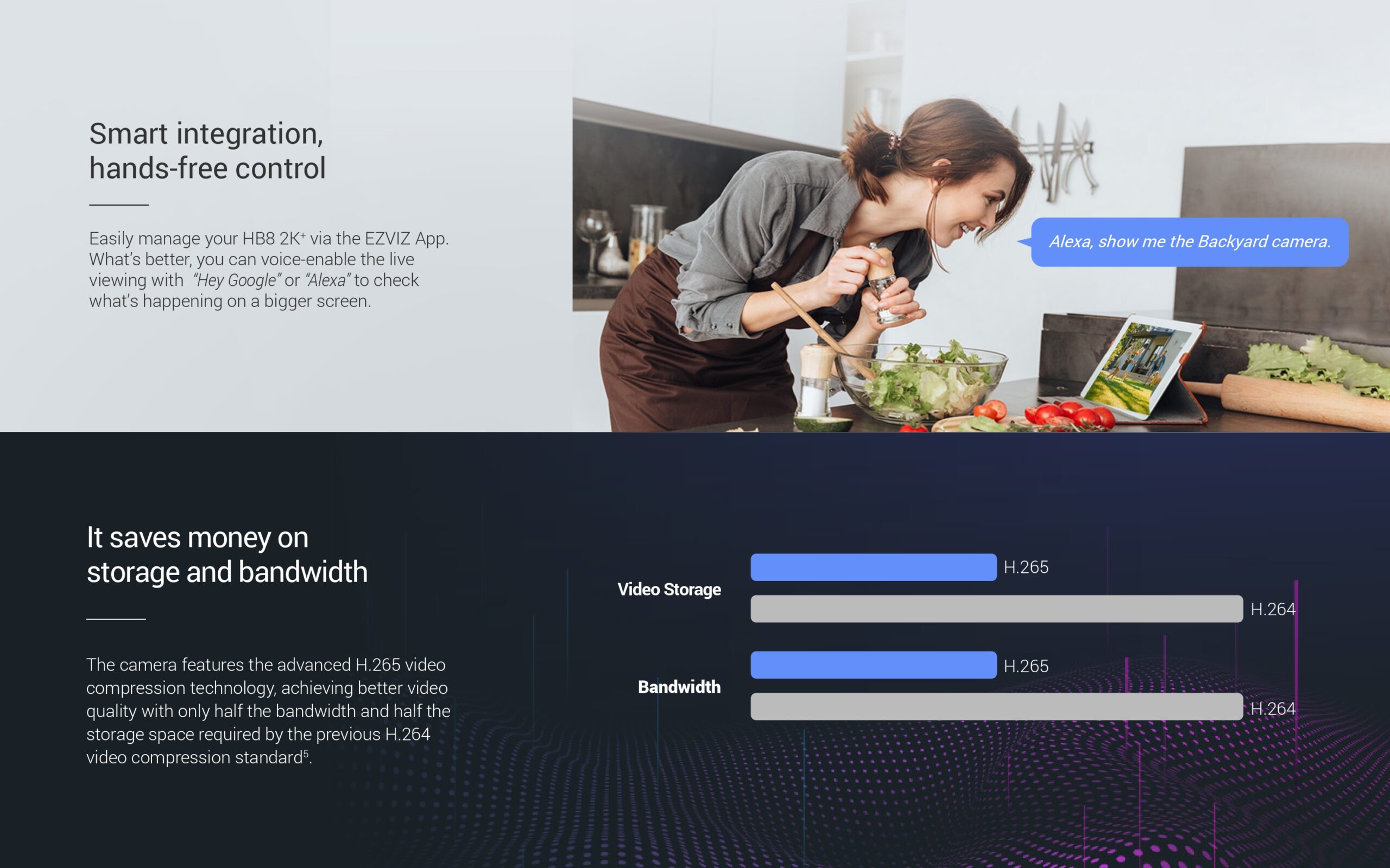 Easily manage your HB8 2K⁺ via the EZVIZ App. What’s better, you can voice-enable the live viewing with “Hey Google” or “Alexa” to check what’s happening on a bigger screen.