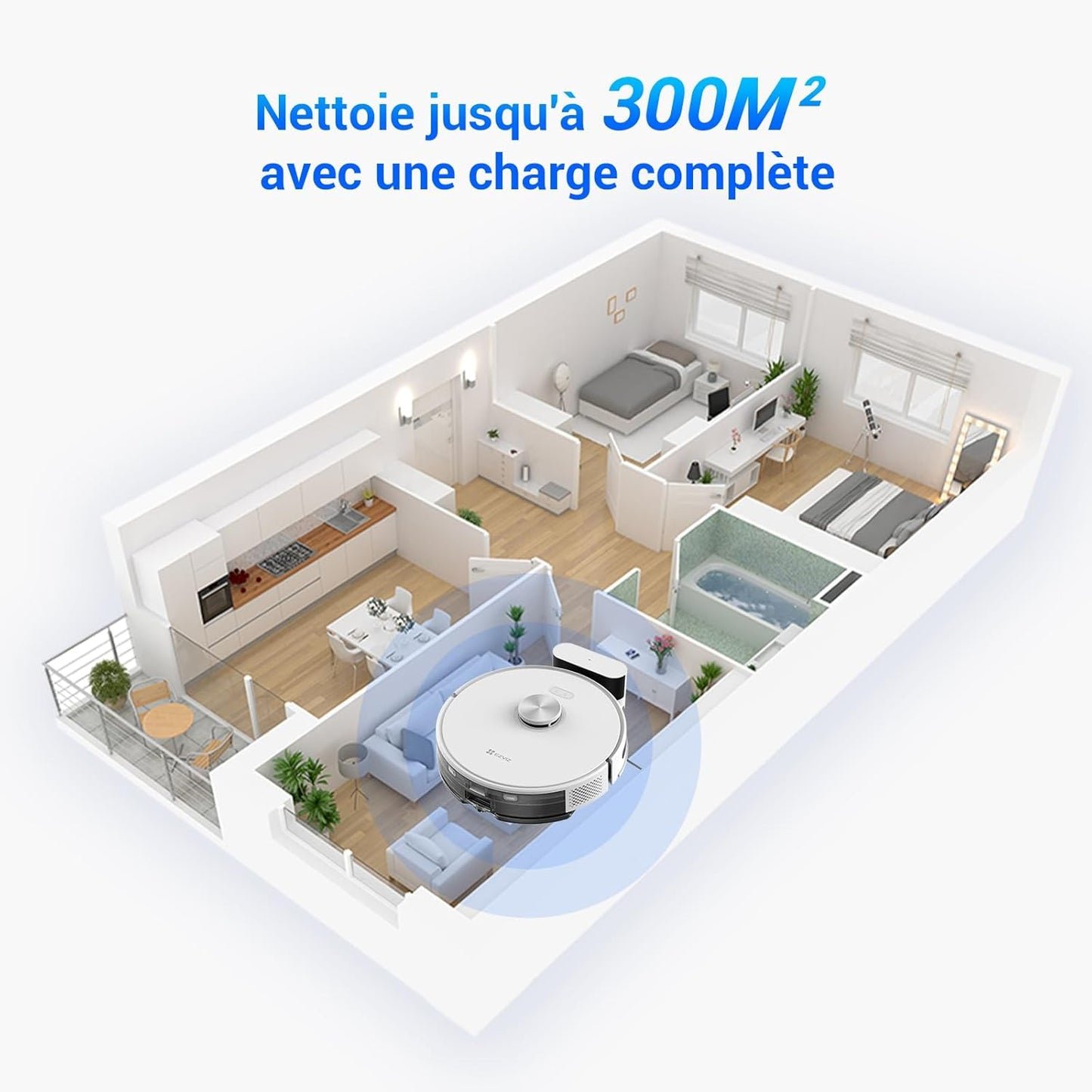🔋 Extended Cleaning Time: Massive 4930mAh battery covers up to 300m² on a single charge