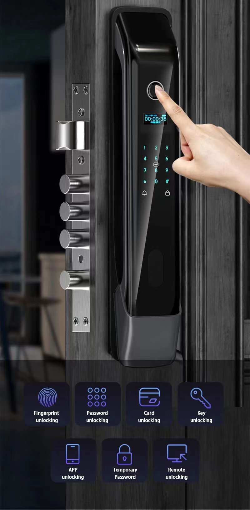 🔐 Multiple Unlock Options – Fingerprint, card, password, face recognition & app