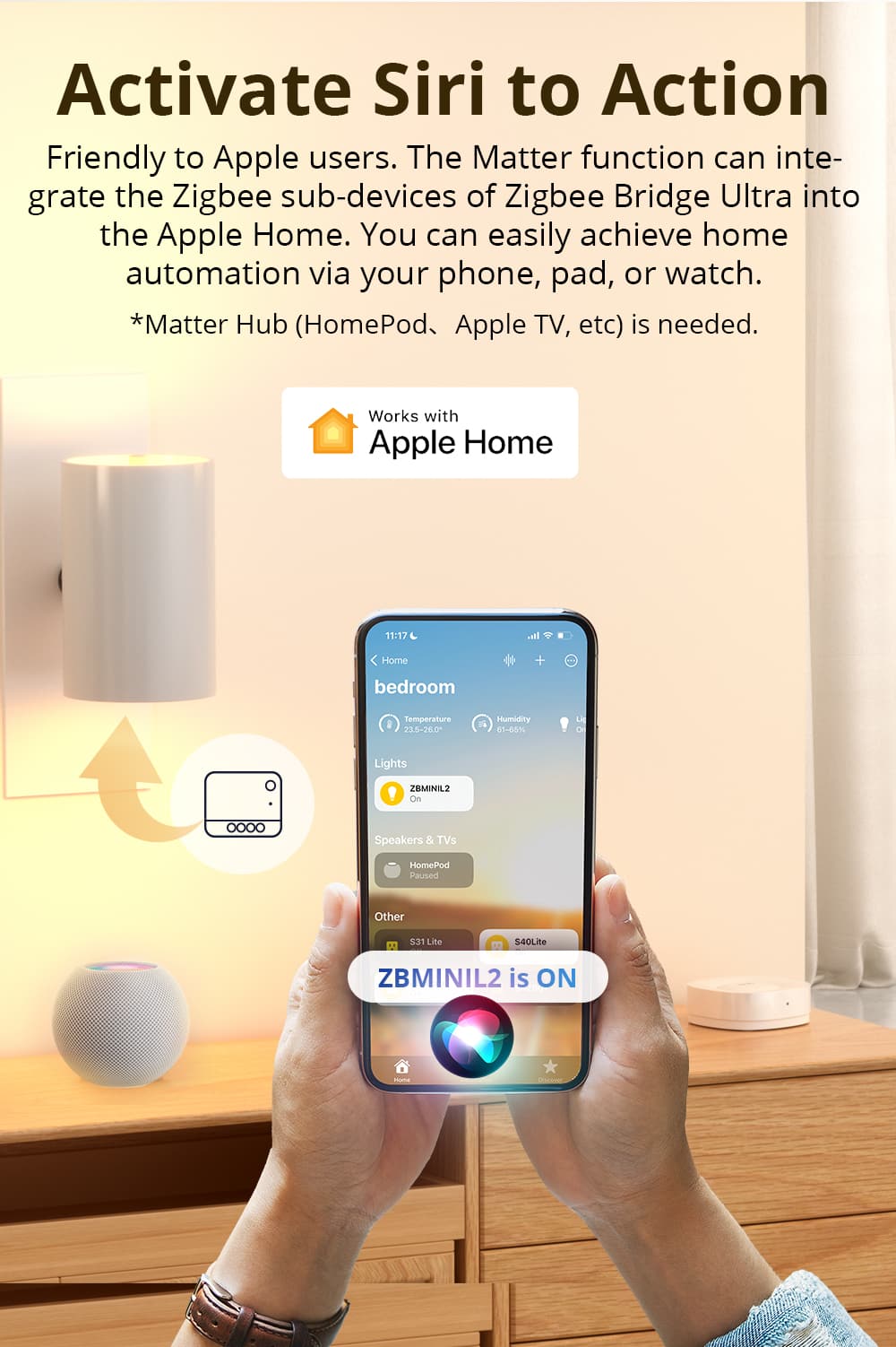【Matter Bridge】Break down the barriers of different loT Platforms. Keep the Zigbee Bridge Ultra and the Matter hub in the same LAN, the Zigbee sub-devices can be seamlessly integrated with the Matter ecosystem. *Only supports Zigbee sub-devices from the SONOFF brand and eWeLink ecosystem.