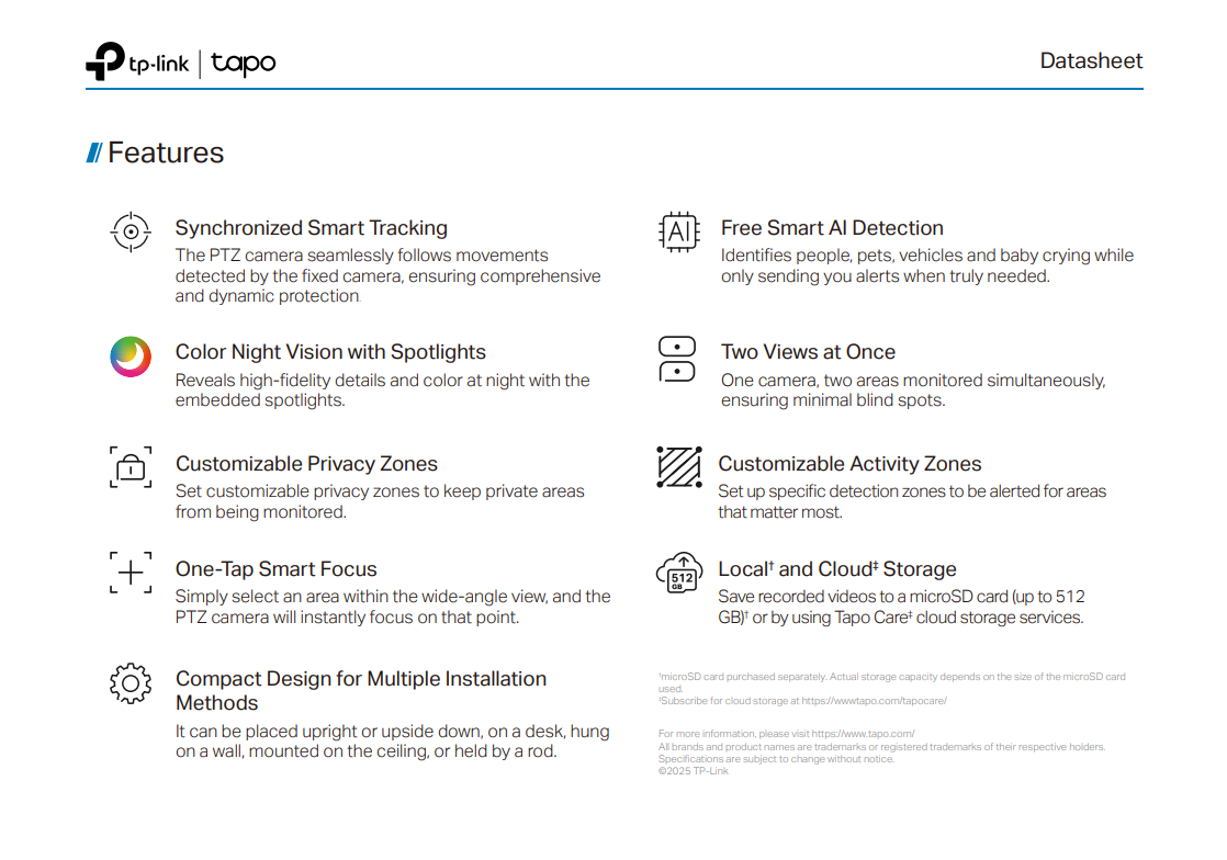Real-Time Two-Way Audio: Built-in premium microphone and speaker allow you to hold clear conversations with anyone near the camera via the Tapo app.