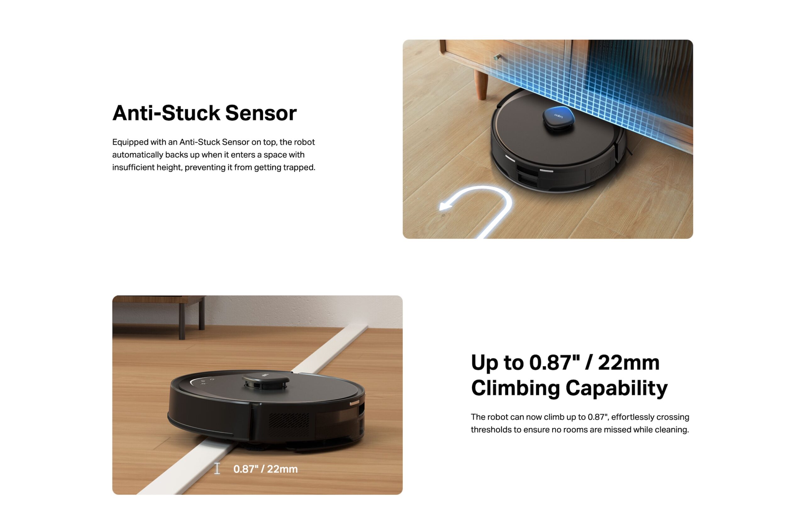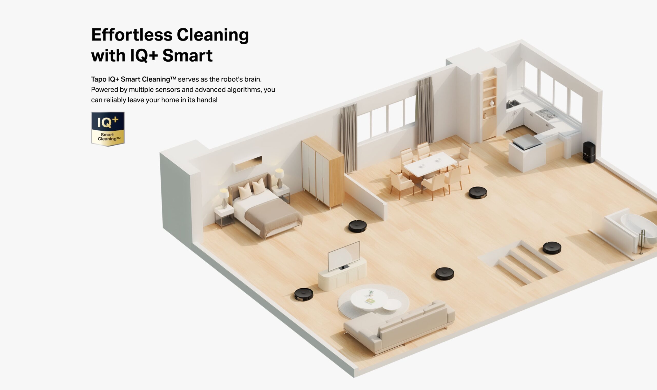 Tapo IQ+ Smart Cleaning™ – Serves as the robot’s brain. Powered by multiple sensors and advanced algorithms, you can reliably leave your home in its hands.