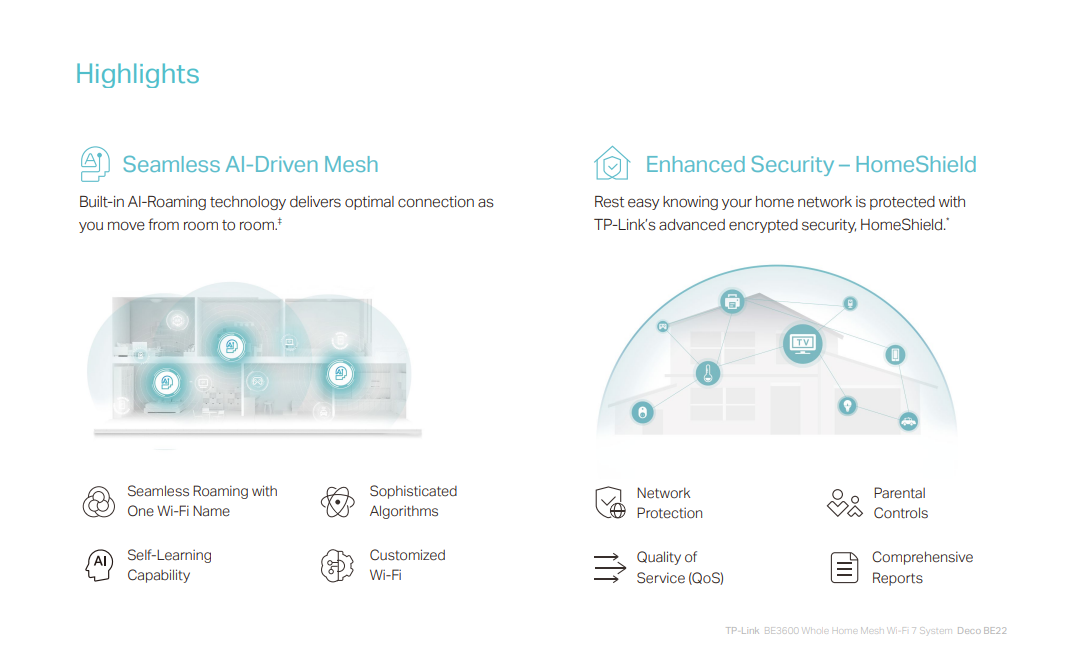 AI-Driven Smart Roaming: Forms a unified network with built-in smart roaming, creating the ideal Wi-Fi solution for your home.