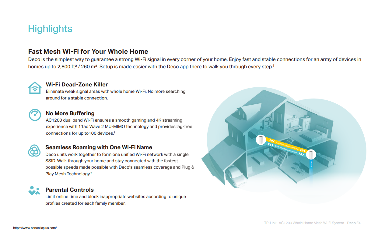 Fast & Stable Connectivity: Deco E4 provides stable speeds of up to 1167 Mbps and works with all major Internet Service Providers (ISPs) and modems.