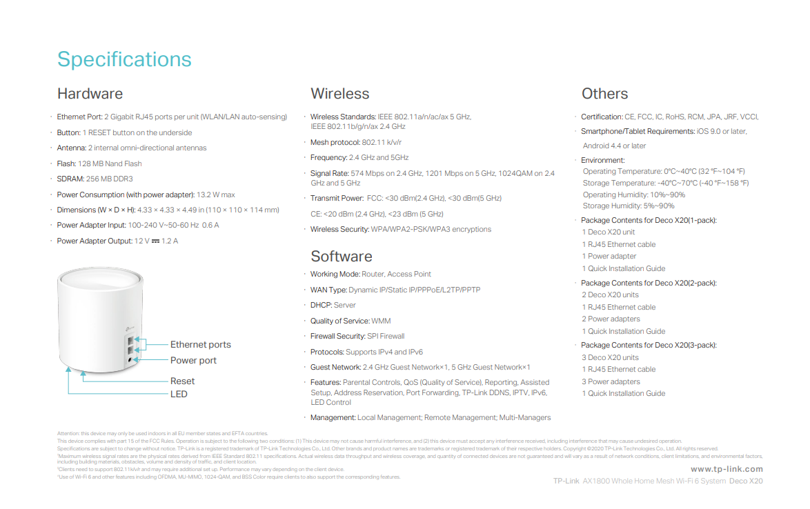 Faster Connections: Wi-Fi 6 speeds up to 1800 Mbps — 1201 Mbps on 5 GHz and 574 Mbps on 2.4 GHz.