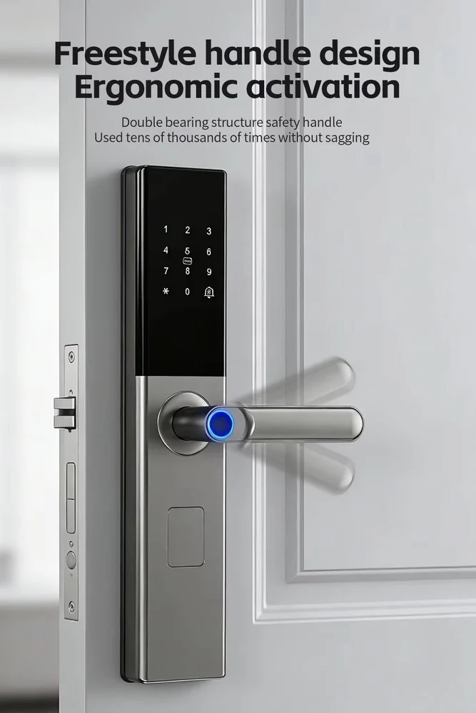 🔓 5-in-1 Unlocking: Access via Fingerprint, Passcode, IC Card, Emergency Mechanical Key, or the Tuya Smart App