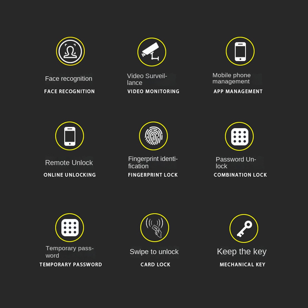 🔐 Multiple unlock options: fingerprint, card, password, face recognition, mobile app