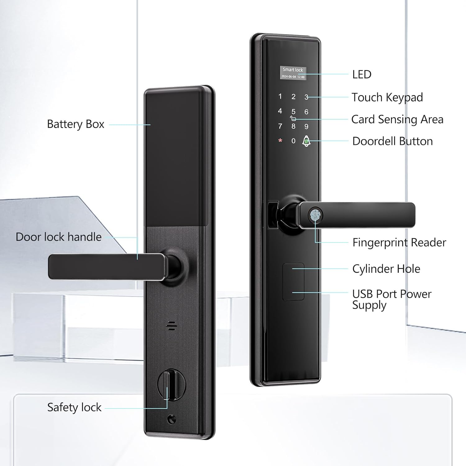 ๐ 4-in-1 Smart Unlocking: Access your home via Fingerprint, Passcode, IC Card, or the Tuya Mobile App