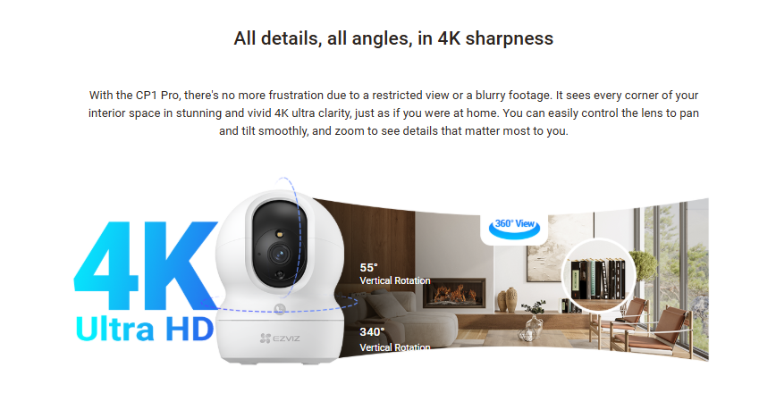 كاميرا إيزفيز داخلية واي فاي بدقة 4K بدون بطارية CS-CP1 Pro