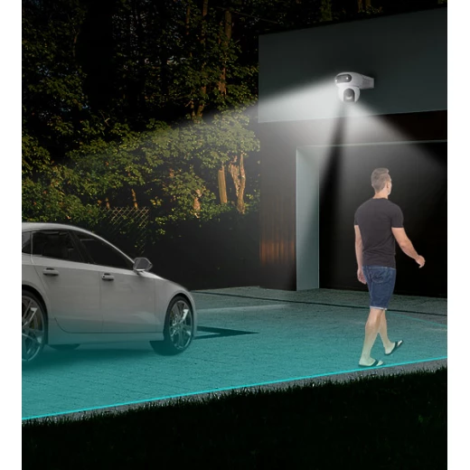 🔊 الدفاع النشط المتطور: مزودة بصافرة إنذار قوية وكشافات ضوئية لردع المتسللين فوراً