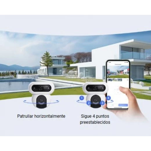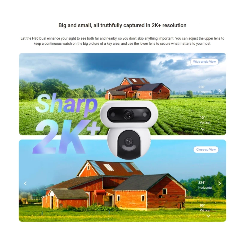 📸 تقنية العدسة المزدوجة: عدستين بدقة 2K+ (5MP) لكل منهما لمراقبة منطقتين في وقت واحد