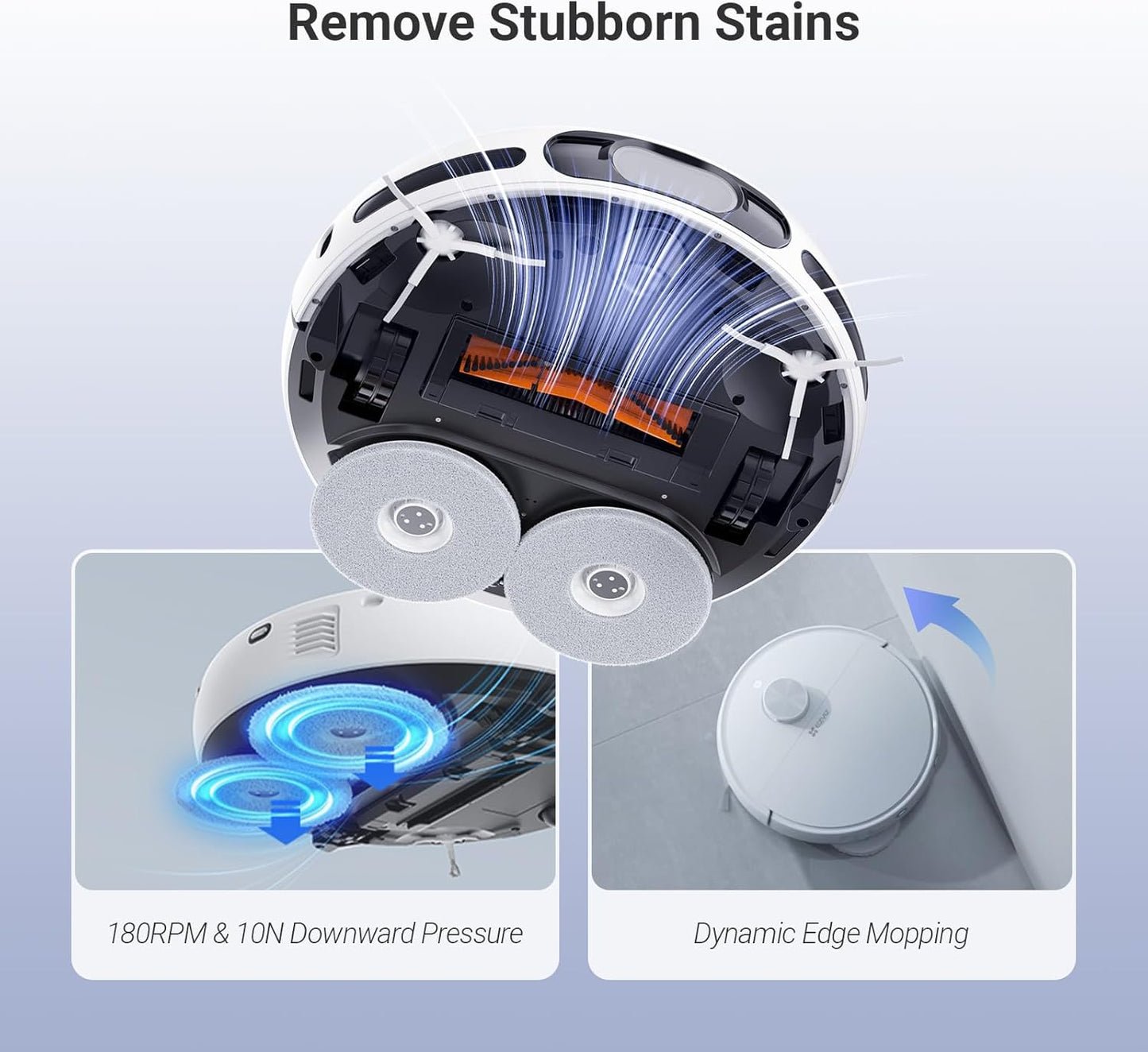تزيل الأوساخ المحشورة بين الفجوات والغبار المخفي في السجاد لتنظيف أعمق وأكثر قوة.نظام ملاحة مزدوج LiDAR وجيروسكوب